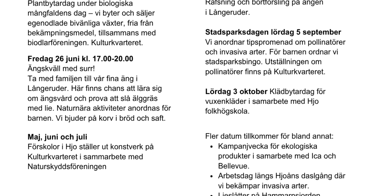 Ängen i Långeruder Lördag 3:e augusti Drop in mellan 7.00 och 11.00. Ta med lie och räfsa om du har samt fikakorg. Det är skyltat till Långeruderfrån Korbergavägen, ca 15 min innan vi börjar. Pulkabacken på Hammarsjorden Lördagen 24:e augusti. Drop in mellan 7.00 och 11.00. Ta med lie och räfsa om du har samt […]